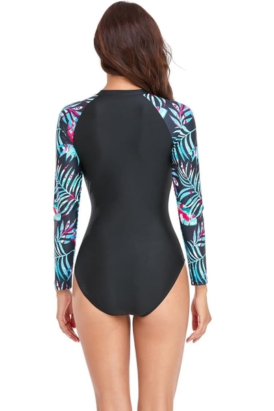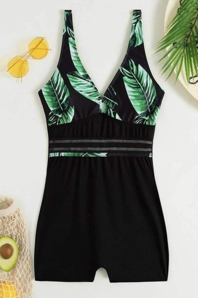 Nuevo con etiquetasUna pieza con cremallera y estampado de hojas