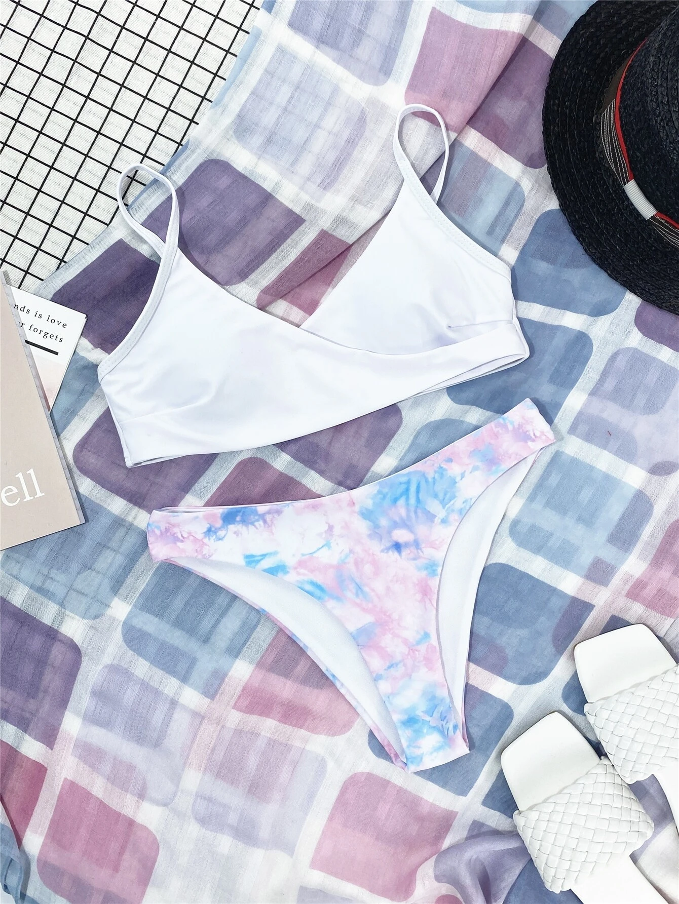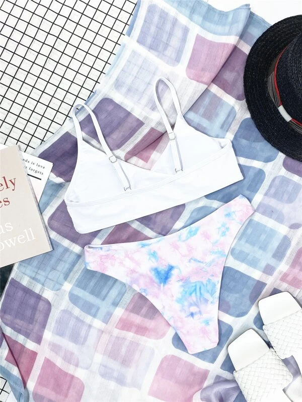 Shein bikini de cuello cruzado de tie dye