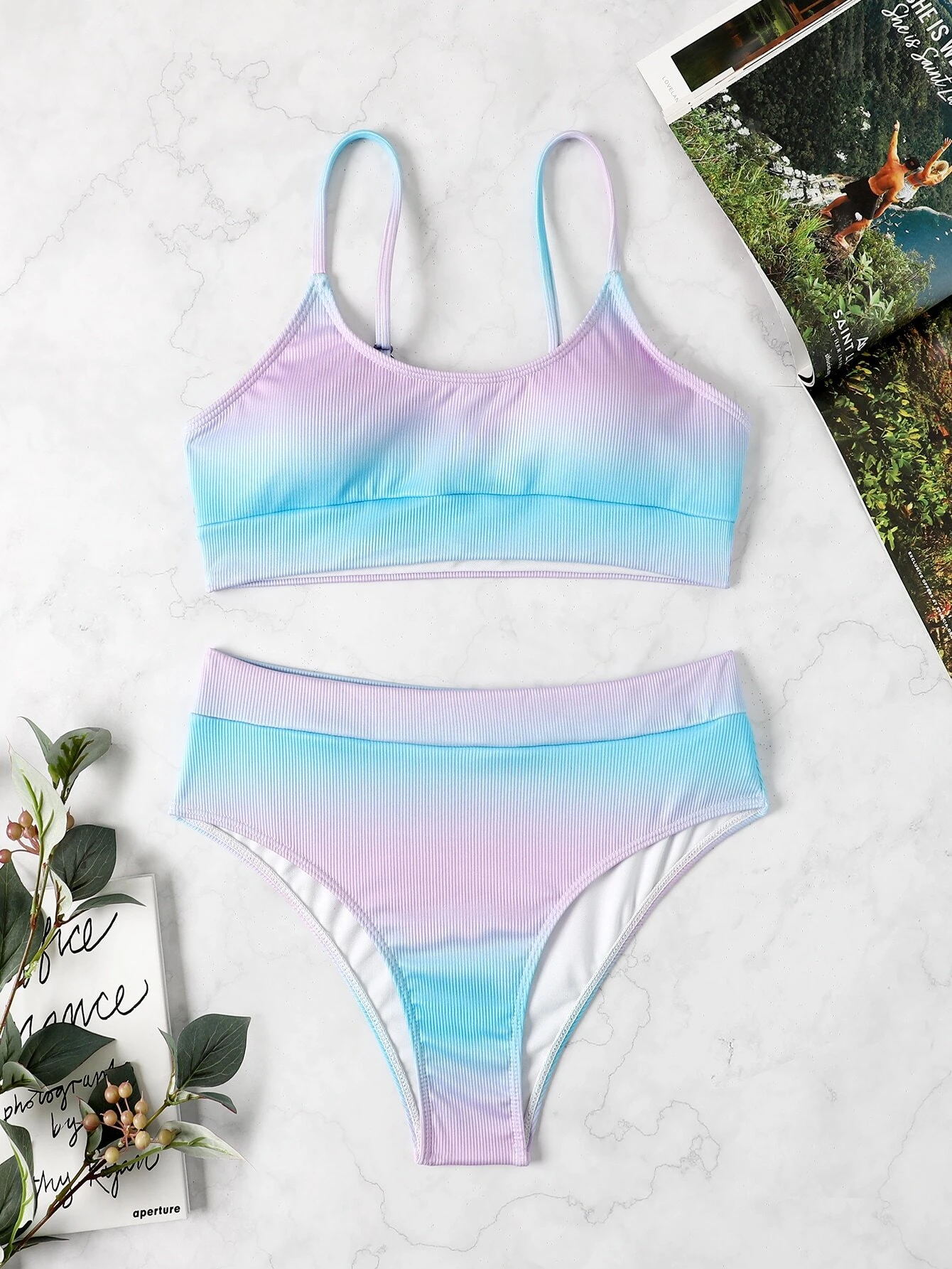 Shein bikini de ombré de canalé